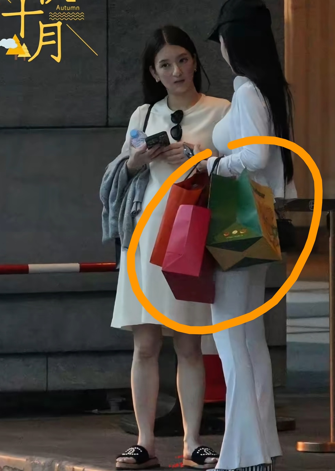 方媛和闺蜜逛街,扫货三大包,闺蜜全程拎着,真实照片腿显壮
