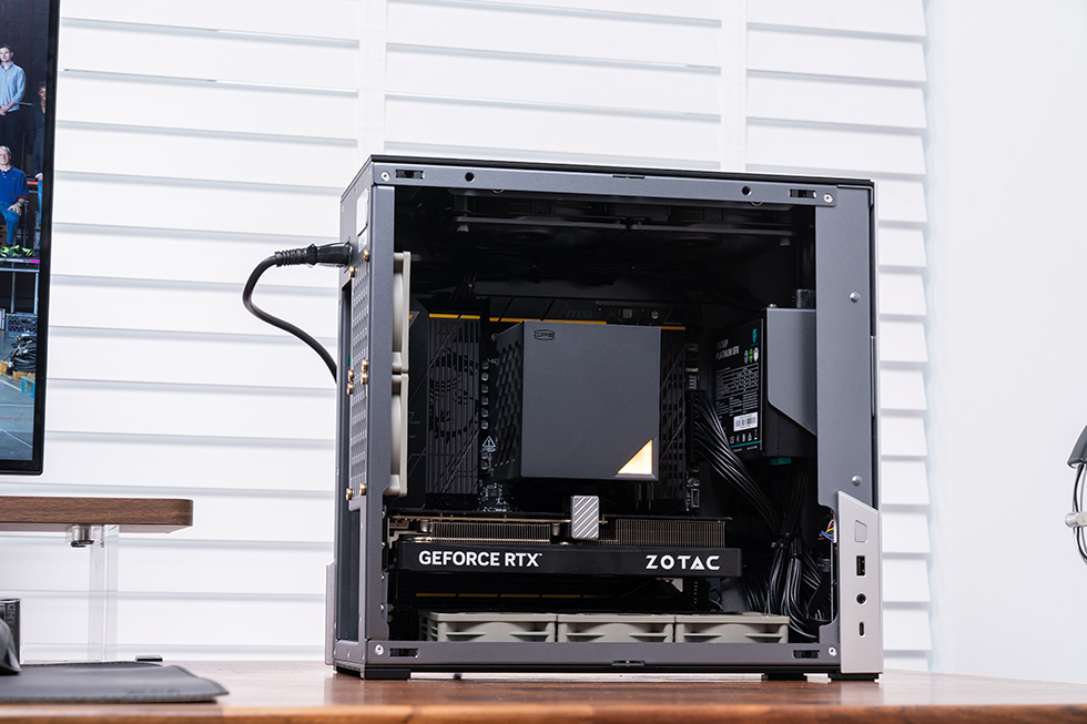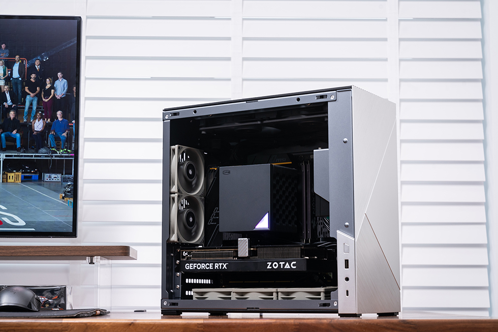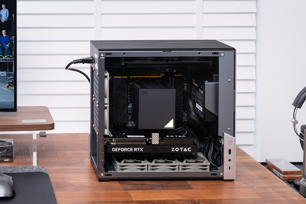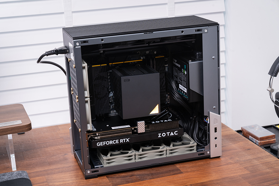 作为Plus升级版本,它在保持 19L体积的同时,适配 MATX 平台与高性能硬件。内部可容纳118cm的风冷 超品三RZ620M X、九州风神 750W 白金 SFX 电源以及索泰 RTX 5060 Ti 星夜 OC 显卡,搭配利民 8cm 薄扇组成高效风道,让 R7 9850X3D 的强劲性能稳定释放。整机在紧凑体积中实现了散热、拓展与颜值的均衡升级,既保留 Abee 一贯的高端质感,又以更成熟的设计,打造一台兼顾桌面美学与强悍实力的精致小钢炮。