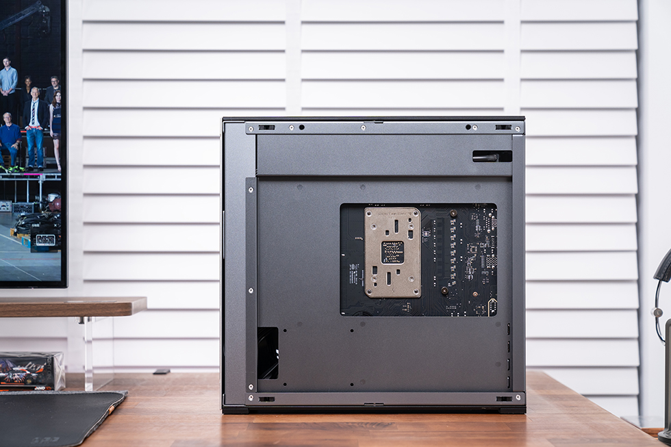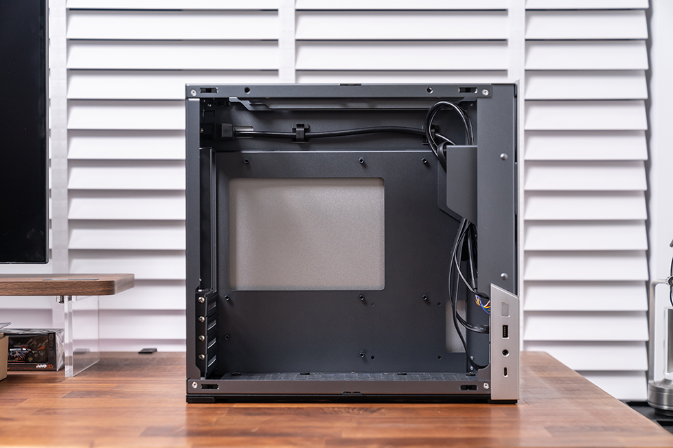 机箱背面主板位预留了大面积的安装开孔,唯一不足的是背部几乎没有走线的空间,建议定制电源模组线,以免原装线缆过长过粗影响实际安装。