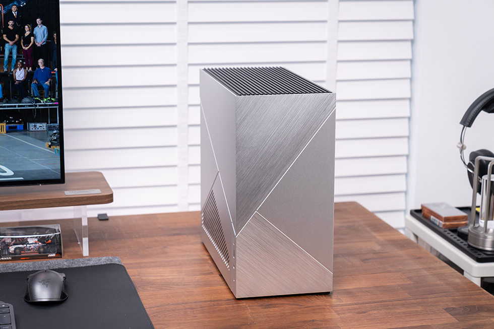 Abee Enclosure M19 Plus作为M19的迭代产品,尺寸上依旧保持了348mm(长) × 162mm(宽) × 340mm(高)的19L体积。外观依旧是CNC & 激光切割精加工制造,正面通过斜线分割拆分成3个区域,分别通过对向拉丝和喷砂工艺进行表现处理,呈现出不同的层次感,金属质感十足。