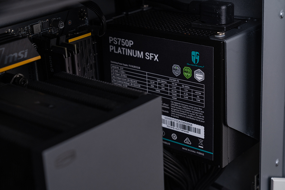 电源来自九州风神PS750P,作为九州风神进军高阶 SFX 市场的力作,PS750P 凭借白金级认证和 ATX 3.1 规格,获得 Cybenetics Platinum 以及 PPLP 115V Platinum 双重白金认证,全系满足235%整机瞬时功率偏移,300% 的12V-2×6 显卡瞬时功率偏移(持续0.1毫秒),超越英特尔ATX 3.1标准要求,并提供7年长效质保。