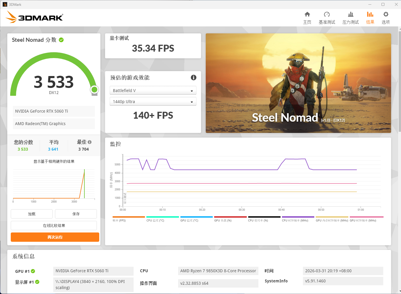 3DMARK显卡测试,主要对4K分辨率下D12和光追性能进行测试