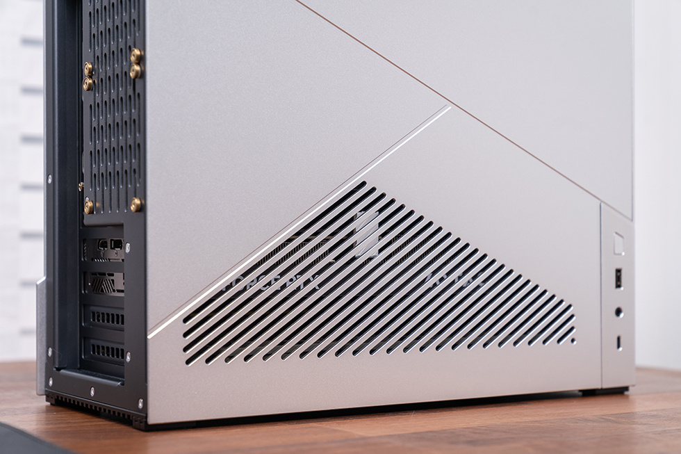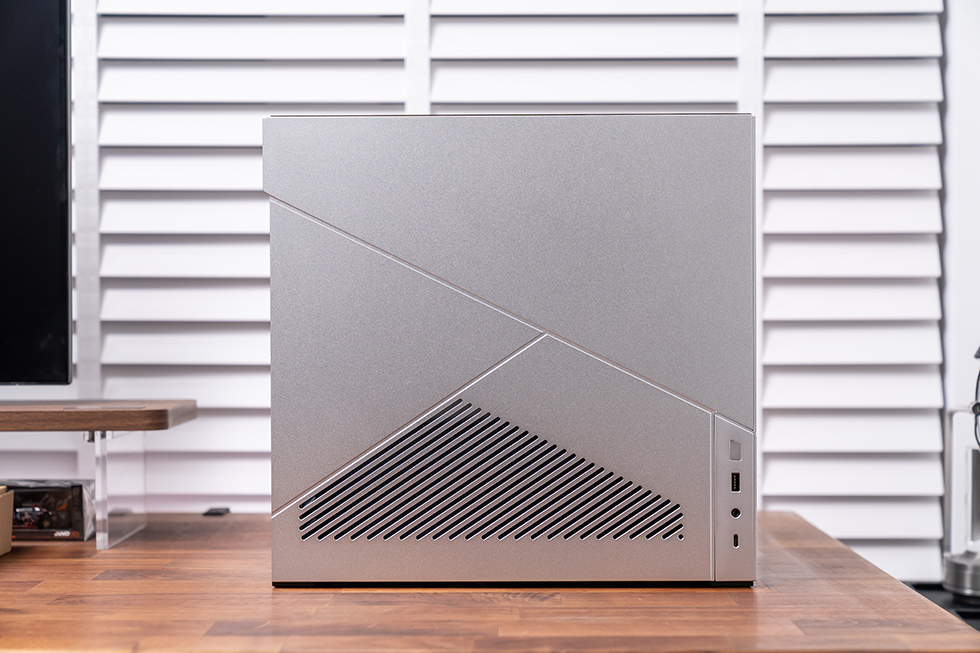 最大的提点就是在侧板增加44%的通风面积,增设显卡独立出风口扩大原有散热孔面积,根除积热问题。前置 I/O布置在左侧面板下方,提供了一个开机键,1个USB 3.0 TypeA,1个3.5mm 复合音频接口和一个全速 USB 3.2 Type-C。