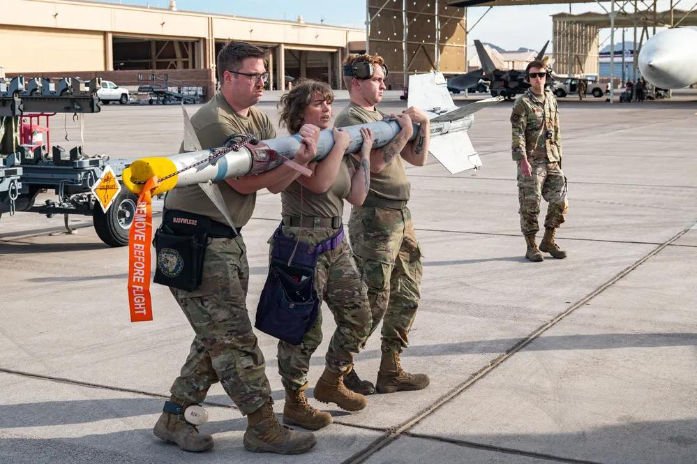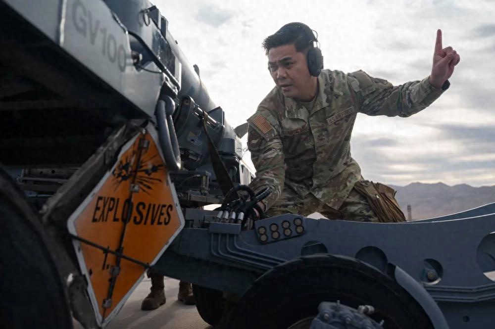 来自第57维修大队的武器装载队伍于2025年4月18日在内华达州内利斯空军基地参加季度武器装载比赛。装载队比赛评估队伍的熟练程度、技术技能和团队合作能力。
