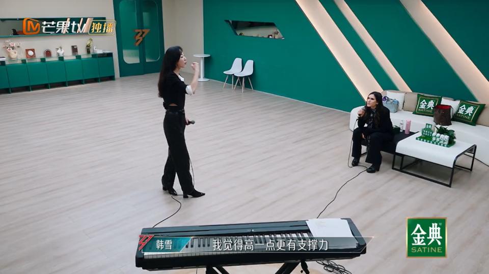 甚至,韩雪在调整唱法的间隙,突发灵感还设计了结束姿势,为整场歌曲表演进一步延伸了故事性。