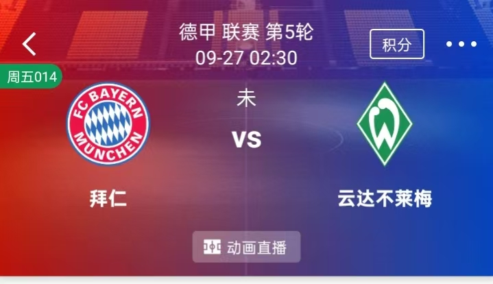 周五 014 德甲:拜仁慕尼黑VS云达不莱梅
