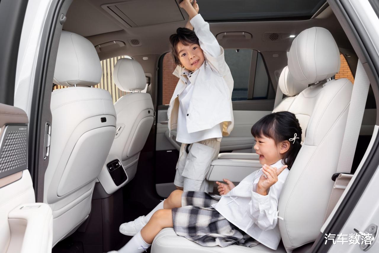 家庭出行的关注点主要两方面:一是舒适,二是安全。在舒适豪华方面,首先是空间,腾势N8L车身尺寸5200/1999/1820mm,轴距3075mm,最大程度保证了车内的宽适空间,即使1.3米的孩子亦可在车内直立行走。