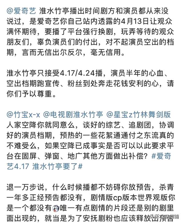 但是,等艺人拍好宣传物料、留好档期、粉丝做完地广后,平台却延迟该剧的播出,引发刘诗诗粉丝强烈不满。