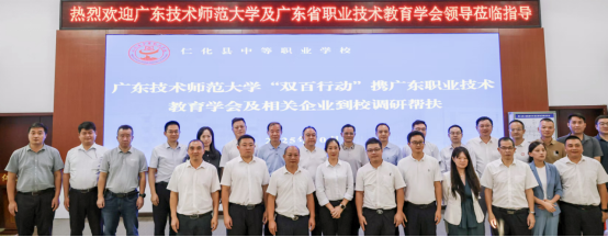为深入贯彻落实省委、省政府关于实施“百千万工程”的总体部署,推动高校“双百行动”走深走实,10月16日,广东技术师范大学党委副书记杜安国率队赴韶关市仁化县开展调研帮扶工作。此次活动由广东省职业技术教育学会协同参加,旨在进一步深化校地合作机制,助力仁化县域教育、文化和产业高质量发展。