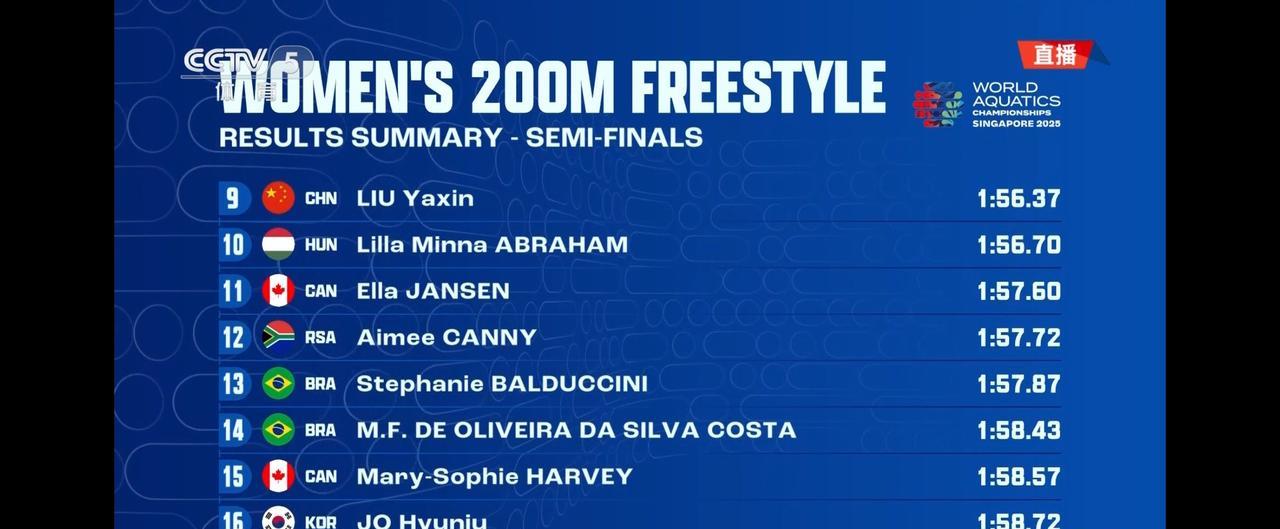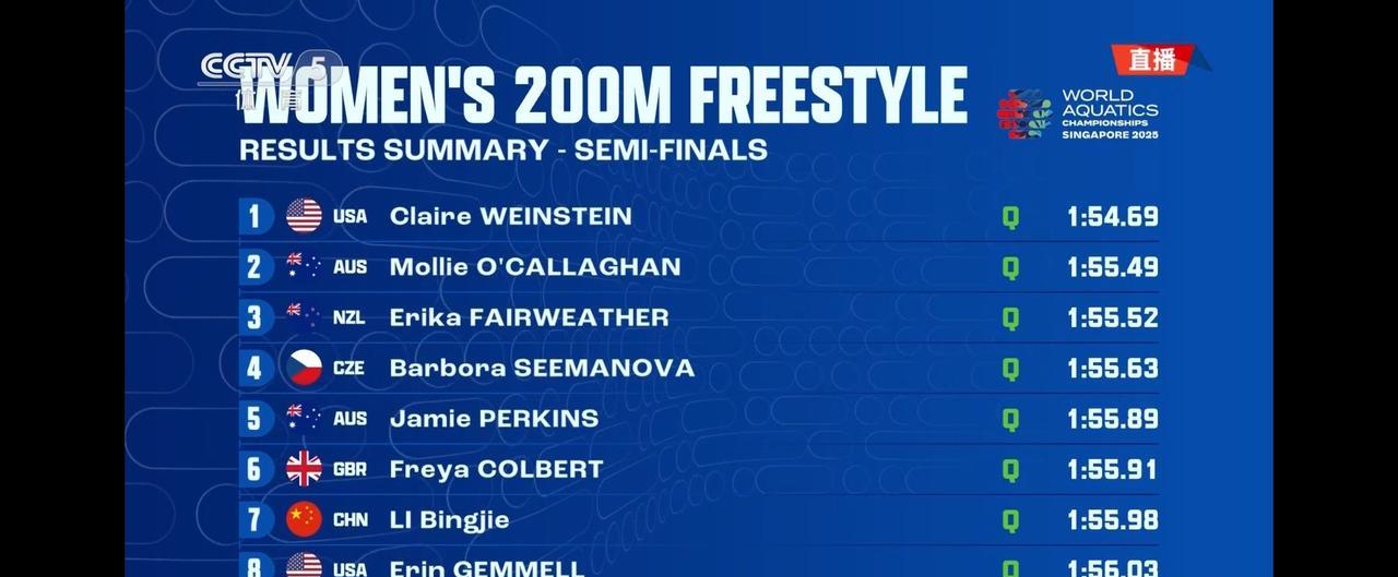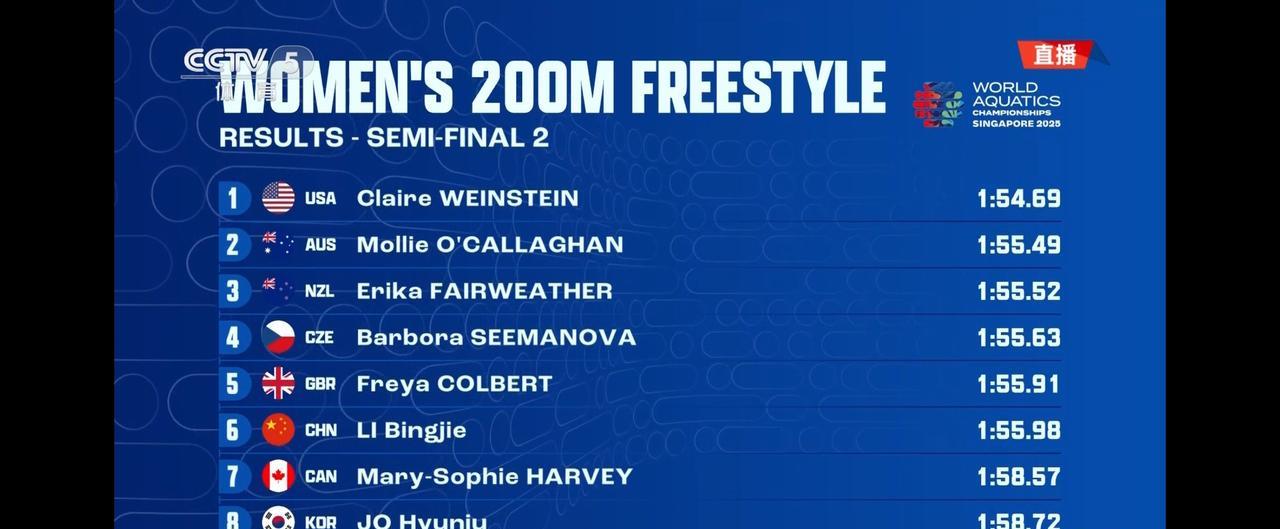 李冰洁在第二小组第七道,今天她刚比完1500米决赛获得第四,出发后这组运动员速度带的非常的快,最终李冰洁以1分55秒98获得小组第六,但是综合两组成绩排名第七晋级决赛。而柳雅欣遗憾排名第九无缘晋级。