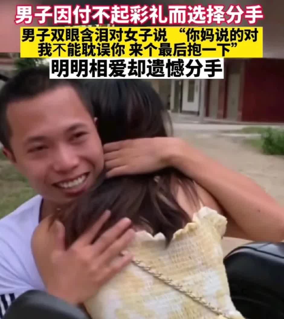 男子因付不起高彩礼而选择分手,男子双眼含泪对女子说:“你妈说的对,我不能耽误你的青春,来个最后的拥抱吧”,明明相爱的一对恋人,最后选择了分手! 老辈传下来的彩礼,本是给新人的一点启动钱,是长辈的心意。现在倒好,成了衡量爱情的尺子,还得用冷冰冰的数字说话。你说要面子,可这面子是拿年轻人的日子换的,划算吗? 其实彩礼不用那么死。比如看男方家实际情况来,少点攀比,多点体谅;或者把彩礼变成俩人的共同存款,以后一起买房养娃,这不比光给个数强? 爱情不是做买卖,结婚也不是卖闺女。真体面的,是看着俩年轻人愿意一起打拼,不是逼着一方打肿脸充胖子。 你觉得,彩礼咋算才不伤情分,又不丢面子?来唠唠你的招儿。