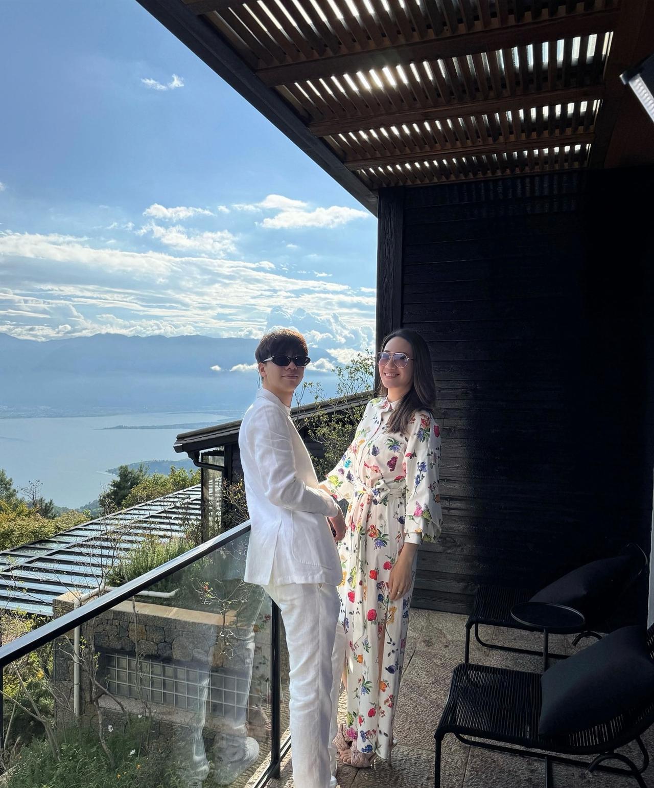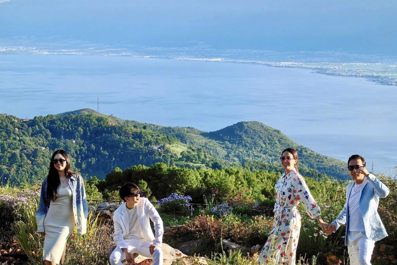 7月30日,甄子丹晒出一组图,一家人到云南大理旅游,在双廊古镇景点合影留念的画面