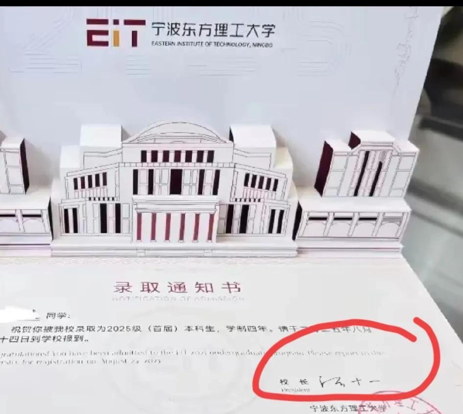 亲戚家孩子考了663分,居然没有选浙大,反而去了今年才招本科生的宁波东方理工大学。 亲戚家男孩成绩一直很好,这次高考考了663分,这分可以够上浙大线了,但可能上不了好专业。于是就直接冲宁波东方理工大学了,而且这分数还有10万奖金可以拿。 这个大学今年才招本科生,而且只在浙江省内招70人。是芯片首富虞仁荣出资3百亿及宁波市政府出资160亿创办的,师资力量比较强大,还听说毕业后工作基本不用愁,韦尔股份、中芯国际、小米等大公司包了。 看着录取书还是挺气派的,还是由校长陈十一院士亲笔签名的,诚意满满的。