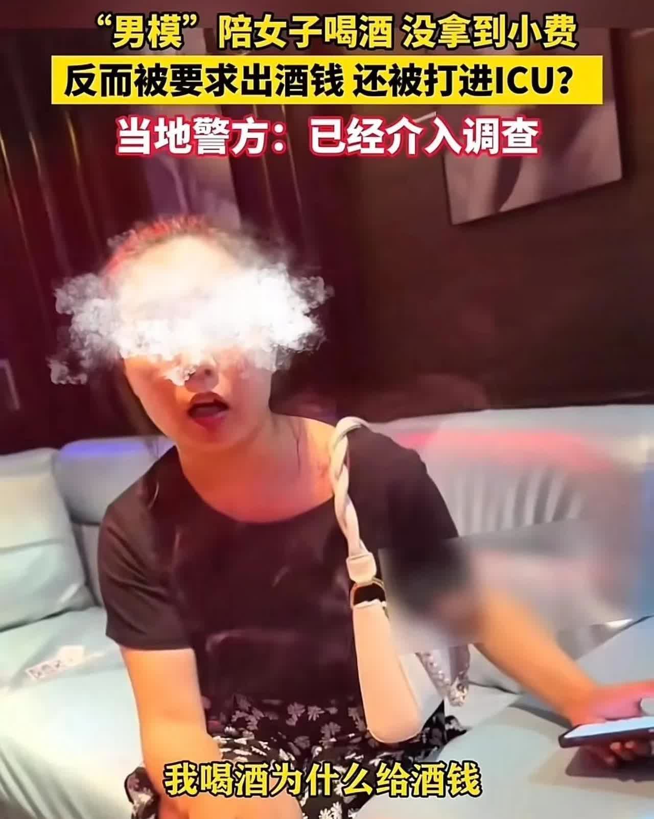 “吃霸王鸭?”广东佛山,男模称自己被女子叫到KTV,喝酒喝到吐。但女子不仅不给小费,还反过来让他出酒钱!男子看女子想白嫖,非常气愤,跟女子理论,结果被打伤住进ICU!网友:这就是传说中的“上班”还要“付费”? 在广东佛山的一家KTV里,发生了一件因为“陪喝酒”和“给钱”的事情而打起来的大事,结果一个男模被打进了医院,这事儿引起了大家的广泛关注。 那个男模说,他被一个女的叫到KTV去陪她们喝酒。他去了以后,啥价钱也没问,就先自己喝了三杯,把气氛给搞热乎了。然后那些女的就一个接一个地来敬酒,有的人还动手动脚的。他心里有点不舒服,但为了赚点小费,还是硬着头皮陪她们喝,最后都喝到吐了,整整一箱酒都被他们喝光了。 可是,等要走的时候,那些女的非但没给他小费,还让他付酒钱。男模就不乐意了,说:“我都喝吐了,还要我付钱?”但那女的特别强硬,还说要报警。两个人就这么吵了起来,结果突然有个男的冲进包厢,拿起酒瓶就往男模头上砸。男模头上都是血,吓得赶紧往外跑,后来被送到医院急救,住进了重症监护室。他的头被缝了好多针,脸也破了相,以后怎么赚钱都成了问题。 男模把这事儿发到了网上,特别生气地说:我都被打成这样了,对方却没人出来负责! 现在警察已经介入调查了,要是男模的伤够严重,那个打人的男的可能还要负刑事责任。另外,KTV里是不是有那种非法的陪酒服务,也得再好好查查。