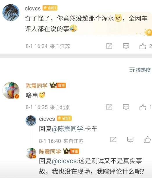这个事情这两天闹得不可开交的时候,有人问陈震怎么看待这个事情,他还是用一个比较严谨的态度再回答,他直接说自己不懂的卡车,所以不能够给出专业的建议。
