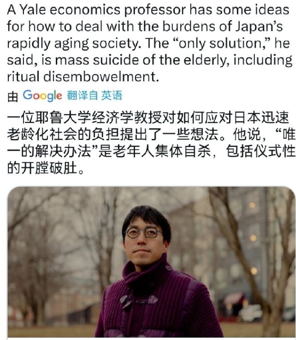 更奇葩的是,有一位日本专家说,解决老龄化很简单,那就是建议老人剖.腹,可以快速的解决日本的老龄化问题,这个提议一出,竟然有很多日本的年轻人支持,真是震碎我三观。
