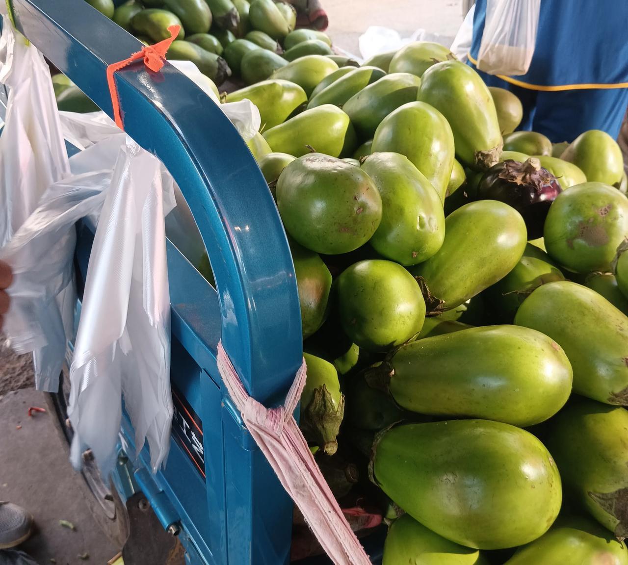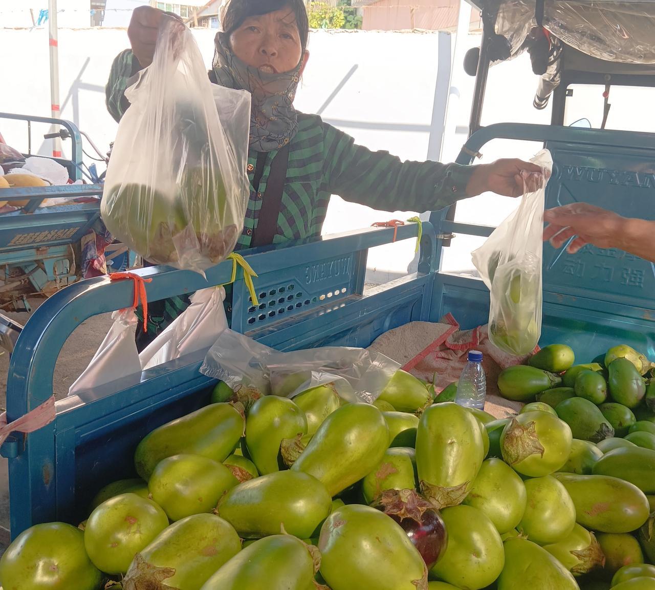 早市卖菜大姐这操作,我也是服了! 我去买茄子,卖茄子的大姐她的三轮车刚好停在一个斜坡处,车子有点滑车,大姐急中生智,拿起一个茄子放在车轮下面,车子立马稳当了!这真是就地取材啊!记得我小时候去地里干活,遇到溜车的情况都是找个砖头或者泥坷垃垫在车轮下,现在去哪找这些东西啊!只是委屈了这个茄子了!命不好,与众不同,要与千斤力量去抗衡,命太硬,生来就肩负着特殊的使命!我给它赐名,茄坚强!我说要买走它,大姐说不买!哈哈!