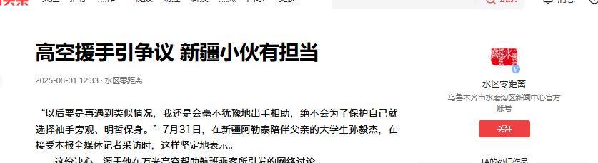湖北武汉,一名大学生在乘坐前往新疆的飞机上,突然听到广播在喊着需要医生,有一位乘客身体出现了不适。该学生自告奋勇前往,并紧急对乘客进行救助使其转危为安。然而此事曝光后,不少网友质疑:他没有行医资格证,这属于违法行医。 “我不会为了保护自己而选择袖手旁观、明哲保身。知道自己能干什么,不能干什么,会对自己和患者负责!”一位遭到质疑的大学生孙毅杰义愤填膺的说道。 根据7月28日的报道。孙毅杰,武汉大学医学院一名大二的学生。在校成绩优异,大一结束的暑假就被导师推荐去武汉一医院实习。孙毅杰在实习期间不叫苦不喊累,每天都能在病房中看见他勤奋好学的身影。 实习结束之后,实习期间负责带着孙毅杰的医生告诉导师:“你这学生可是个宝贝啊!这么有灵性的学生让你碰到了,这小子毕业后好好干可不得了啊!” 这对于刚上一年的孙毅杰来说是一份很夸张的赞扬。所以孙毅杰上了大二之后更加刻苦,并且每周末都会去医院当志愿者帮忙学习。 到了大二放暑假,孙毅杰家中有些事情要回家一趟。在7月19日,孙毅杰坐上了回家的飞机,谁料飞机飞行途中广播中忽然报道了一则寻医求救信息: “一名女子在飞机上面神智涣散,希望有医生或者懂得急救知识的人可以帮忙查看。” 孙毅杰在听到广播后,果断的站起身前去查看。他向飞机上面的工作人员表示,他是一名医学生,曾在医院做过志愿者,可以试一试。 就这样,孙毅杰在看到女子的情况之后先将女子平放,进行了一些脉搏、呼吸、心率等检查。又为女子量了血压和血氧饱和度,最后让女子吸氧,女子有所好转,等到下飞机时,孙毅杰还嘱咐女子还是要去医院进行进一步的检查。 事情过了两天之后,孙毅杰还主动关心女子当时的身体状况。女子向孙毅杰道谢并提出要给他一面锦旗。 7月24日,武汉大学官方发布了孙毅杰飞机上救人的报道,网友们看到之后纷纷夸赞孙毅杰见义勇为。可是过了两天,网上有一部分人质疑孙毅杰“临床知识匮乏,没有行医资格证”。 随后孙毅杰回应了开头的那段话并表示:虽然我没有行医资格证,但是我在飞机上面的操作,只是简单的急救措施,并未涉及药品的使用。 也有了解相关法律法规的网友站出来为孙毅杰发声:“孙毅杰飞机上面救人这件事情,无约定义务、无法定义务、为他人权益、紧急救助,符合见义勇为,若因自愿施救导致受害人受到损害,施救人不用承担民事责任。” 此事件一出,网友们都认为紧急情况下有人愿意站出来施救,只要可以救人,其他的不重要。没有什么比生命更重要的事情! 对于这件事情,你们怎么看?