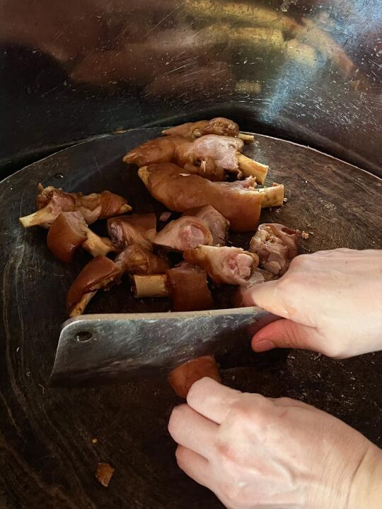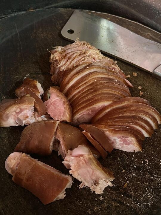 猪肘子,是一整个肘子,用绳子捆住的那种!