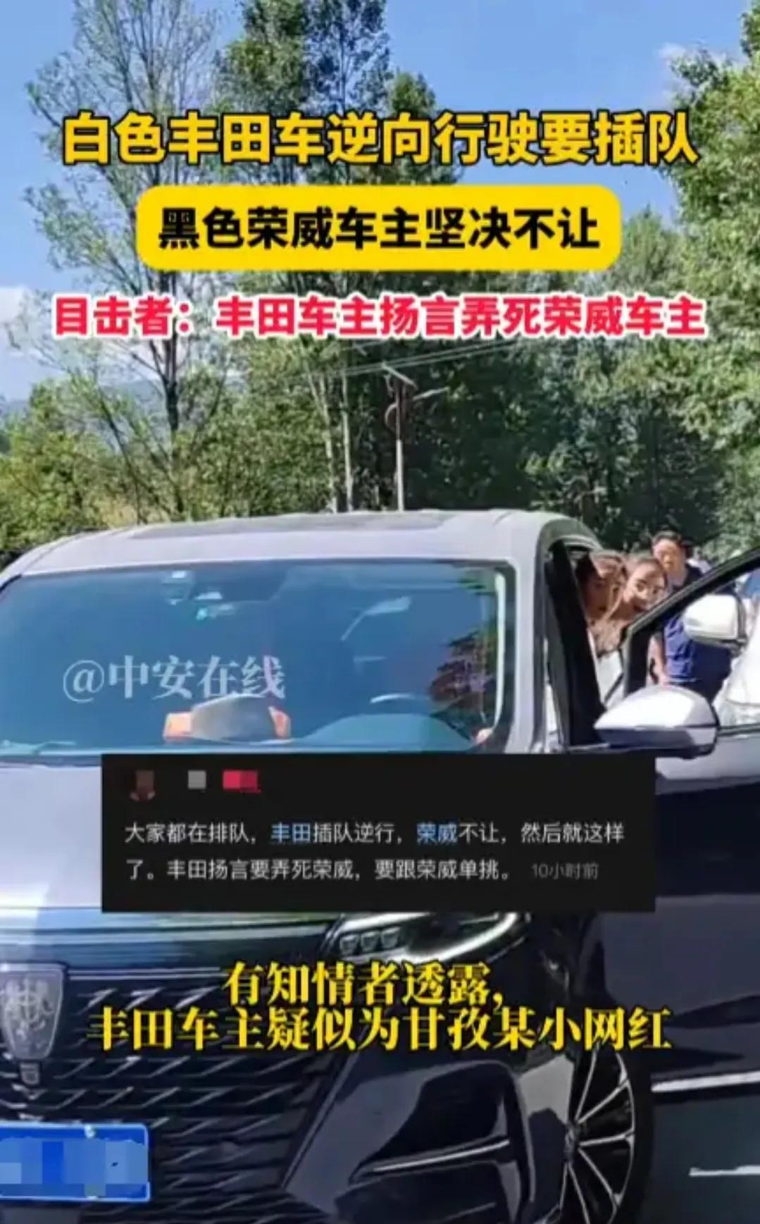 “我劝你少管闲事,信不信我弄死你!”马路上一名男子非常嚣张的威胁着对面的男子。 根据在8月3日那天的报道,事情发生在甘孜州康定一段拥堵的双向车道上。事发当天,因为人流量比较大,所有车主都在老老实实的排队,缓慢前进。前前后后几十辆车排队等了一个多小时,这时突然出现一辆大型日本越野车白色的丰田逆向行驶想插队顶到最前面。就这样导致两条道路全部堵死。 当时在旁边的一辆国产车,黑色荣威车主看到之后,开门下车进行劝阻。但是丰田车主,一点都不愿意退让,甚至还与荣威车主吵了起来。 丰田车主认为自己丢了面子,所以语气十分激烈。两人在争吵的过程中,丰田车主多次拉扯荣威车主的衣领想要与其单挑。甚至还多次扬言要弄死荣威车主。 随后丰田车主又亮出了自己是一位网红的身份,表示荣威车主如果再不识好歹就在网上曝光他。之后围观群众将两人拉开,丰田车主开车扬长而去。 也有围观群众告知了交警,交警当即给这条道路的两边设置了紧急障碍。对丰田车主进行阻拦,之后交警对丰田车主进行了批评教育,并按照法律规定执行“罚款100元扣三分”这一惩罚。 主要是这种事情,法律规定的处罚标准就是这个。这件事情既不算寻衅滋事,也不算打扰公共秩序。说白了就是一场交通违法行为。网友们看到这件事情之后也感觉十分气愤。 “建议荣威车主直接报警,交警对这种人的惩罚也只能定性为交通违法行为。但是这个人大放厥词威胁荣威车主的表现,已经属于寻衅滋事的表现,必须严惩!” 还有一些细心网友看视频之后扒出来了,这位丰田车主的账号。账号有11万的粉丝,没有什么个人才艺和正能量,发的全都是一些街头小流氓的段子。戴着大金链子和名牌手表。日常靠直播打pk赚钱。 从之前无所事事的小混子,在互联网发达起来之后,摇身一变成为了一个小网红。网友们表示 “像这种人也配当网红,也就是互联网刚开始的时候拿他当个笑话看。现在发生了这样的事情,看他这个网红还怎么当下去,以后还是收敛一点,不要这么嚣张了。” 确实,现在有许多人想通过互联网赚钱。里面不乏有许多连小学都没有上过,没有素质的人。通过卖惨或者是卖笑赚钱,在被人们发现之后,有几个点赞就开始嚣张起来。针对这样的人确实该排查筛选,清理一下互联网中的“浊气”。 对于这件事情,你们怎么看?