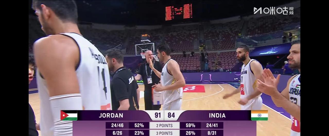 约旦队死里逃生,加时赛险胜排名垫底印度队。 中国男篮小组对手实力不济,小组第一出线稳了! 约旦队本场比赛面对实力最弱的对手印度队,几乎拱手让出胜利。比赛常规时间还剩下53秒时,约旦队还落后印度队4分,大家都以为约旦要爆冷落败于世界排名79位的印度队,印度队在攻防两端突然停电,被约旦队连续攻下4分把比赛带进加时赛。三大核心球员被5犯罚下场的印度队,在加时赛里明显体力不支,最终遗憾败下阵来。 纵观全场比赛各项数据,约旦队与印度队几乎势均力敌,约旦队能赢下比赛,主要依靠拿下30分的37岁归化老将塔克和得到24分的阿巴斯支撑,还有全场高达40次的罚球(印度队仅获得13次罚球)。老迈体弱的塔克带领三分球命中率仅23%的约旦队,很难给身高体壮、体力充沛的中国男篮带来威胁。