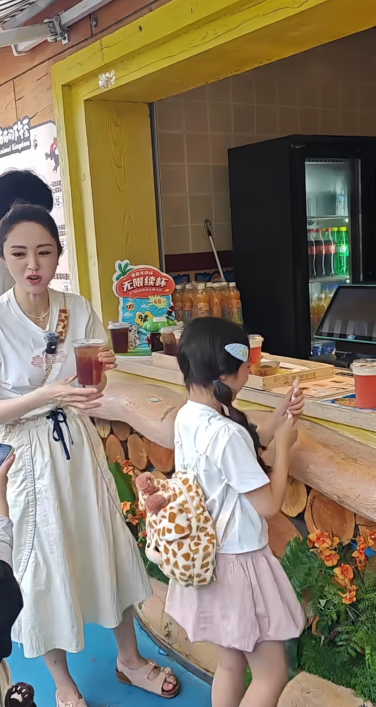 8月7日,有网友在郑州偶遇董璇和小酒窝,母女俩在银基动物王国游玩的画面。 9岁的