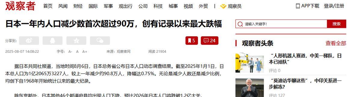 日本人口创下有史以来最大跌幅,除了这之外,还有更可怕的事情! 一年就少了 90 多万人,除了东京,全国 46 个都道府县全在缩水,照这速度,明年就得跌破 1.2 亿。 更要命的是,死的人创了纪录,生的人却少得可怜,这一增一减,把整个国家的隐忧全暴露出来了。 为啥跌这么狠?看看日本年轻人的日子就懂了,结婚得先攒够首付,养孩子从幼儿园到大学全是钱坑。 年轻人不是在 "过劳死" 边缘挣扎,就是拿着微薄工资打零工,自己都养不明白,哪敢生孩子? 日本企业那套 "一辈子绑在公司" 的规矩,把年轻人谈恋爱的时间都榨干了,生育率能不跌吗? 老年人多更是雪上加霜,65 岁以上的快占三成,养老金早就见底,多少七老八十的还在便利店打工。 15 到 64 岁的劳动人口刚过一半,一个年轻人要养两个老人,这负担压得人喘不过气,完全是恶性循环。 有意思的是,外国人口成了 "救命稻草",去年在日外国人涨了 10% 多,快 370 万了,八成多是能干活的壮劳力,北海道增幅快 20%。 可这些人顶多填填劳动力窟窿,工厂缺人、养老院缺护工全靠他们,但终究代替不了本国人口增长,治标不治本。 这事儿说到底,是日本社会太僵化,天天吹 "工匠精神",人口问题上却转不过弯。年轻人想喘口气就被骂 "不努力",企业宁愿招外国人也不给本国人涨工资、减工时。 反观咱们中国,早就看透人口的重要性,一边优化生育政策,一边搞养老改革,哪像他们这么拧巴? 更关键是文化根基不同,咱们讲究 "多子多福",亲戚还会催着年轻人谈恋爱,这种家庭观念就是人口底气。 可日本年轻人越来越怕结婚,"终身未婚" 都成了常态,社会氛围不改,喊再多口号也没用。 日本这困境,其实给咱们提了醒:人口问题连着经济和未来。咱们早就放开三孩,各地忙着发补贴、建托儿所,就是不想走他们的老路。 一个国家的活力,终究得靠自己人丁兴旺,靠外来人口撑场面,根本不长久,日本现在的麻烦,全是过去几十年拧巴的社会模式结的果,这教训,真得好好琢磨。