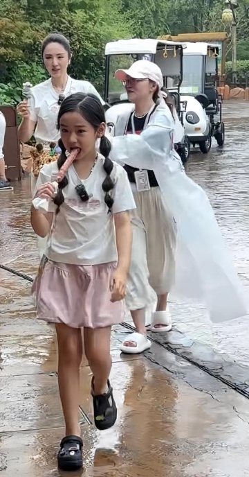 董璇带女儿小酒窝,到郑州银基动物王国游玩。