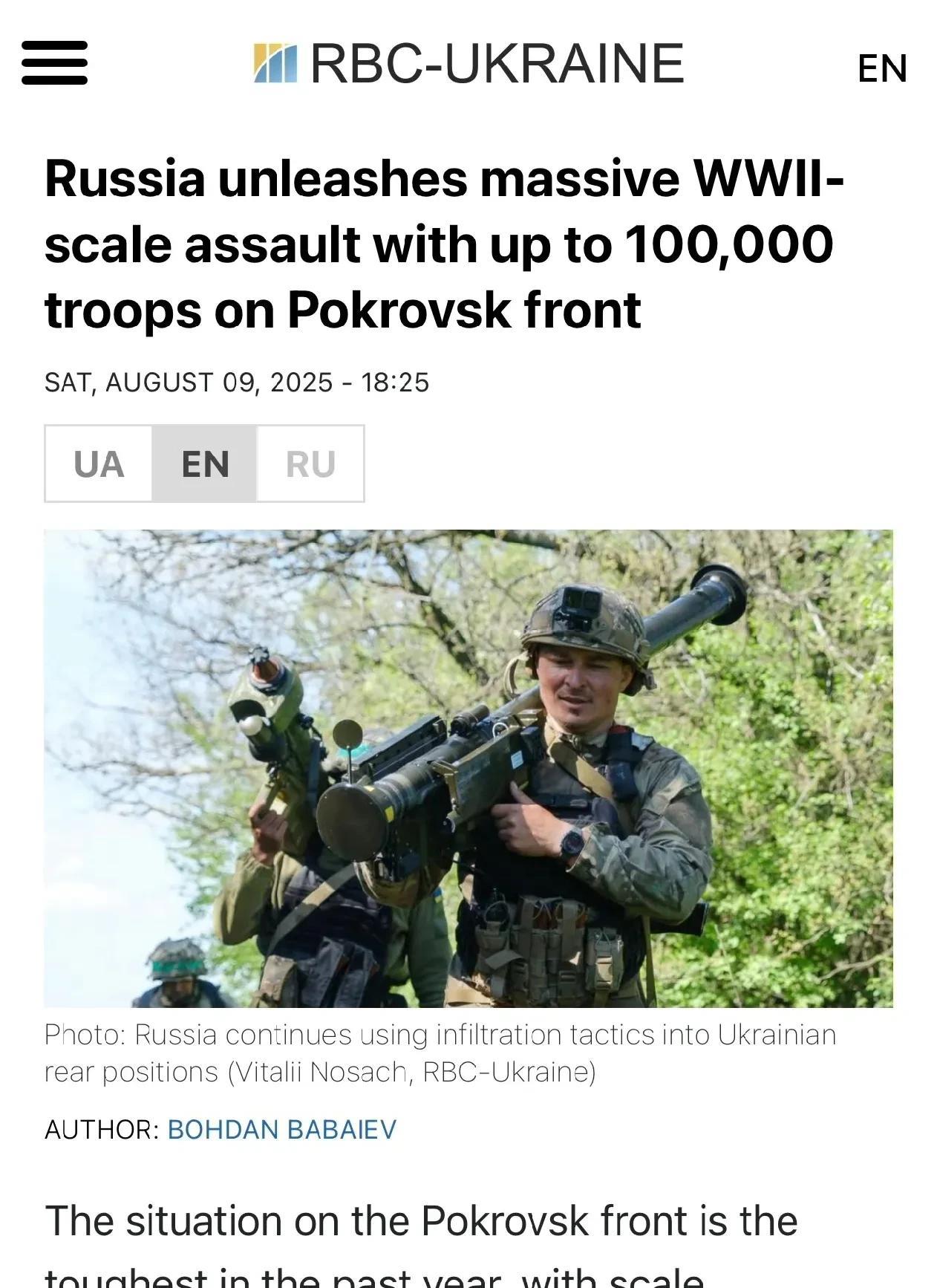 规模接近第二次世界大战:乌克兰武装部队谈论波克罗夫斯克附近今年最艰难的战役。敌人已将多达 10 万名士兵派往狭窄的方向。 俄罗斯在波克罗夫斯克前线发动大规模二战规模进攻,兵力高达十万 根据Khortytsia霍尔蒂恰战役战略部队发言人Viktor Trehubov报道,波克罗夫斯克前线的局势是过去一年中最严峻的,规模接近二战时期。 #俄乌战争# #俄乌冲突#