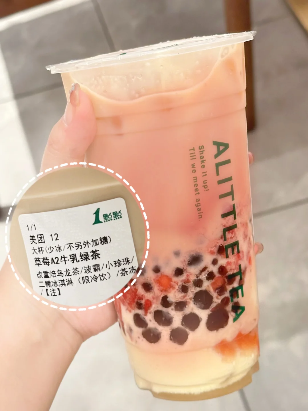 跟风网友点了杯一点点 果然好好喝……明天继续点…… 🧋草莓A2牛乳+波霸+小珍珠+冰淇淋+茶冻 ✔️好喜欢一点点的奶茶小料啊!!吨吨喝起来…