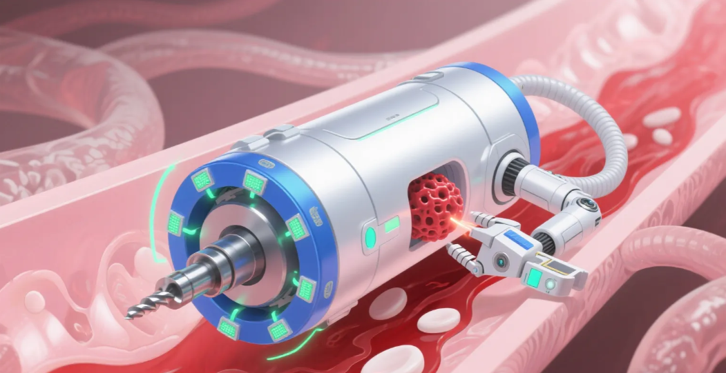 柔性穿越:血管迷宫中的"隐形特工" 镍钛合金记忆管与医用聚合物的复合机身,可穿越5毫米曲率半径的血管急弯;磁耦合传动系统将能量损耗压制到5%以下,单次取栓仅需0.5焦耳——相当于点亮LED灯1秒的能耗。这种"高穿透低扰动"特性,使其在颅内细分支血管中展现独特优势。