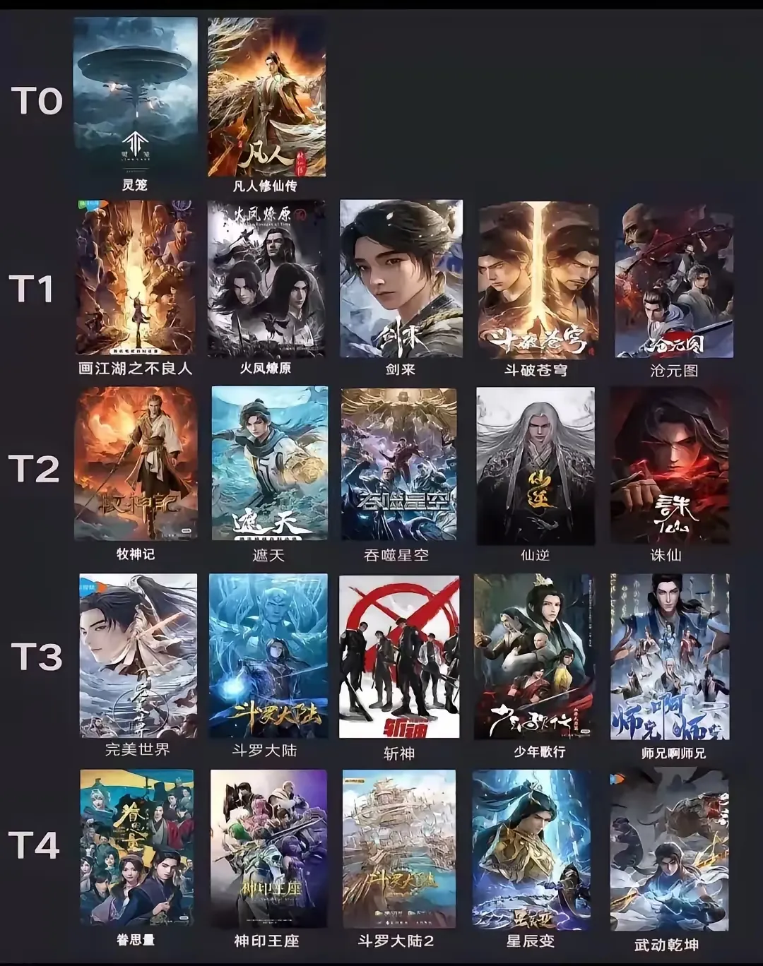 T0两个毫无疑问!斗破顶多T2,仙逆可以提到T1。眷思量应该在T3档。完美和诛仙应该互换下位置。这些全都看过,个人看法