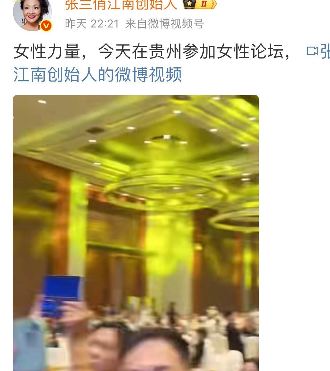 看张兰发的视频,她急吼吼的奔赴贵州原来是为了参加这个大会呀! 很奇怪前几天她在机场的时候,只说晚上看看霖霖第二天接着去贵州! 但没有说去贵州的原因,当时就觉得有点不像她的风格! 张兰以前不管啥事都不避人,还没干呢已经吆喝的全网都知道了!因此还被一些墨宝宝们给搅了几个局! 张兰是吃一堑长一智,现在只说目的地,其他的则是事成之后再发视频! 看她的视频 是去贵州参加了亚洲女性论坛大会!一身贵气打扮的张兰非常抢眼啊,坐在第一排圆桌,不时有人过去递名片或是跟她合影! 看起来现场有不少她的粉丝啊! 讲真哦