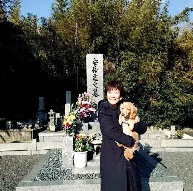 笑着给丈夫扫墓的安倍昭惠,今年2月怀抱着与丈夫共同养的狗狗“罗恩”,一起来给安倍扫墓,她依然微笑着。安倍昭惠与丈夫一直未育子女,所以,安倍晋三把宠物狗当孩子养,这次安倍昭惠抱着狗狗给丈夫扫墓,原本的一家人,又一次团聚了!