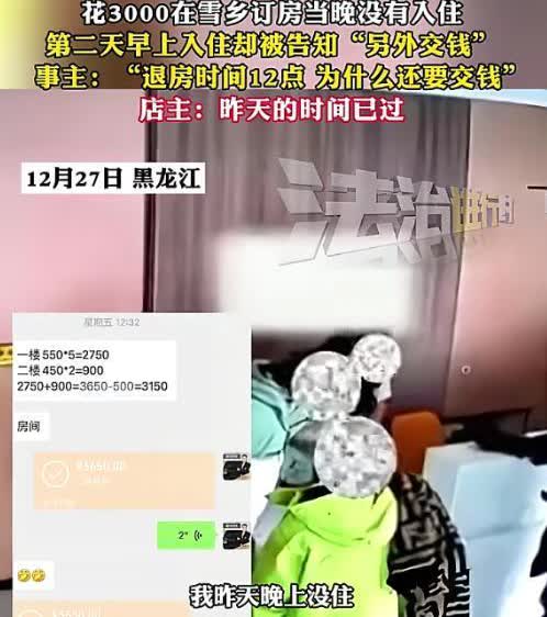 黑龙江,一男子花3000在雪乡订了7间房,由于男子一行人被困在山上,没有按时赶到酒店。可等他们第二天早上7点入住却被告知“另外交钱”,男子认为房间12点前都是自己的,酒店行为是在明目张胆宰客,一气之下投诉相关部门...... 12月27号那天,黑龙江雪乡突然闹起了一场风波。李先生带着团队本来开开心心地去玩,结果山路不好走,车被困住了,没办法按时到酒店。他们原计划在酒店住一晚,已经交了3650元定了7间房,结果只能在山上凑合了一宿。 第二天一早,他们好不容易从山上下来,急匆匆地赶到酒店想休息一下,没想到酒店却说他们得再交钱。酒店的人说,虽然还没到中午12点的退房时间,但因为他们没按时来,所以订单就不算数了。李先生一听就火了,想找老板说说理,结果还是说不通。他一气之下,就把这事儿告到了有关部门。 这事儿很快就在网上传开了,大家各有各的看法。有的人支持李先生,觉得他钱都付了,酒店就应该让他住;也有人觉得酒店也有理,毕竟你没按时到嘛。不过,大多数人还是觉得酒店做得太过了,不近人情,甚至有点像是不守信用。当地监管部门查了之后,发现酒店确实没有按照说好的提供服务,于是就罚它停业整改。李先生维权成功了,这事儿也让大家开始热议旅游服务得标准化、规范化。