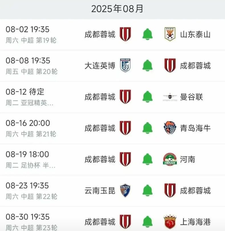 中超八月最惨球队诞生!三线作战累到吐,全联盟独一份! 别的队最多双线出击,就蓉城要同时死磕亚冠、足协杯和联赛!看看这赛程密度,球员怕不是要住在球场了?连上海滩那两支传统强队,都因为早早杯赛出局逃过一劫。 八月简直成了蓉城的地狱考验月。但换个角度看,这魔鬼强度要是真能扛下来,整支队伍的韧性和战斗力绝对能脱胎换骨!想想当年那些经历密集赛程淬炼的球队,后来哪个不是硬骨头? 咬牙撑过去,说不定就是蜕变的开始。这支“钢铁之师”的极限在哪里?我们拭目以待!你们说呢?