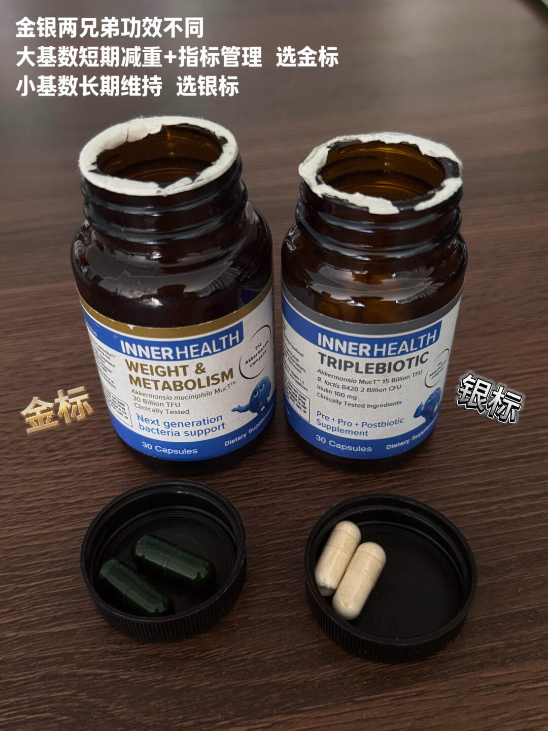 大基数的、对于体重管理很困难的,就可以选择吃金标,每粒有300亿akk菌,还添加了绿茶多酚提取物、铬元素。