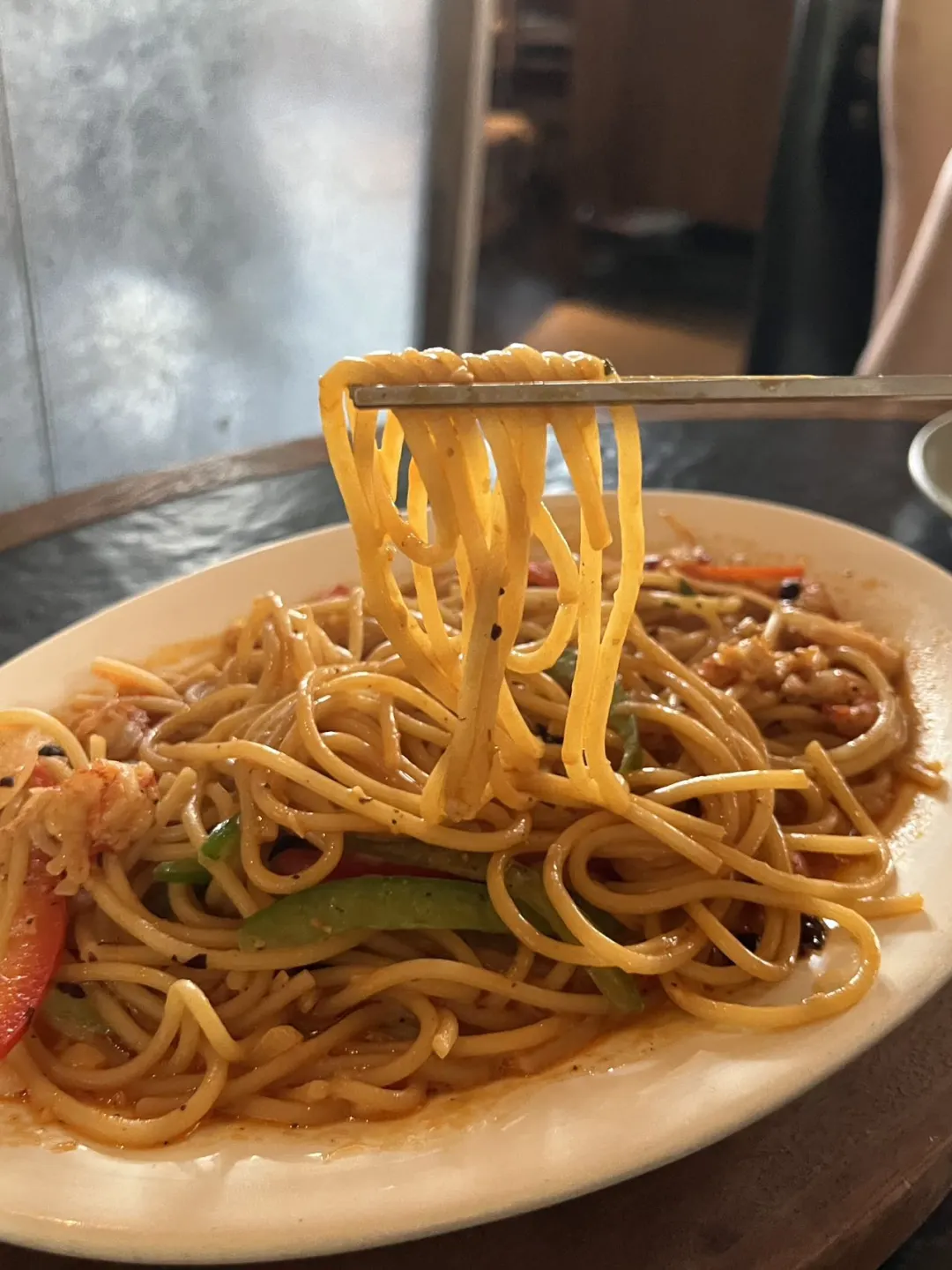 小龙虾意面麻辣过瘾 虾肉给得超实在 吃着巨满足~