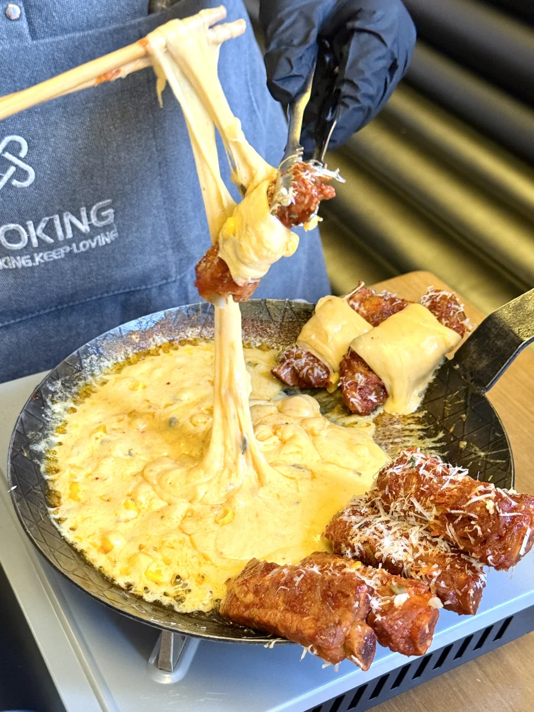 谁能拒绝芝士拉丝到胳膊长的排骨啊!