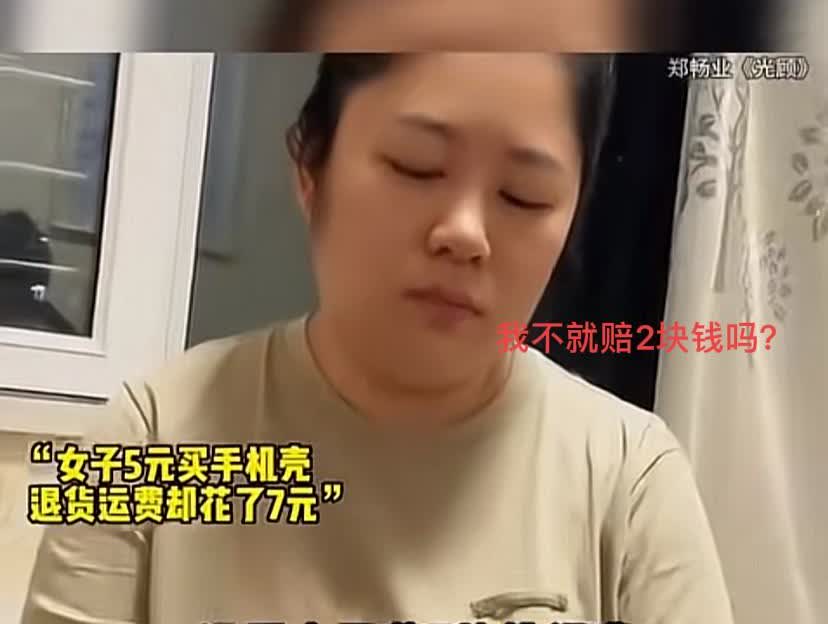 男同志请回避一下,这个问题让女同志回答一下。该女子花5块钱买个手机壳,感觉不太合适想退,退回去运费7块,那么她最终赔多少钱呢,该网购女子坚称自己赔了两块钱~