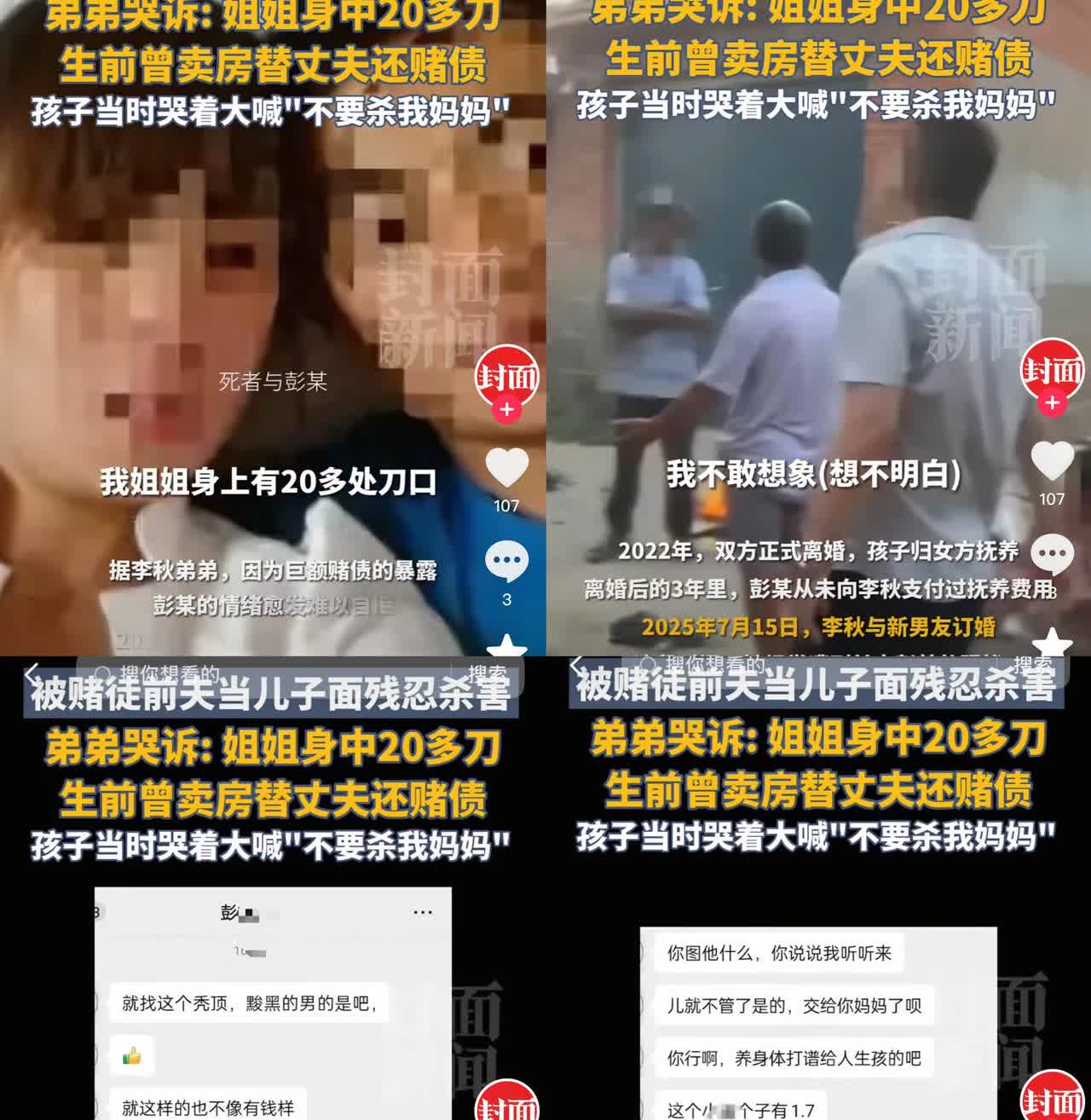 8月10日晚,山东临沂34岁女子在家中,被前夫彭某当着11岁儿子的面,残忍杀害。 34岁的她,经历了多少绝望才终于摆脱赌徒前夫,可谁能想到,离婚3年,新恋情刚有起色,恶魔还是找上门了! 为了帮前夫还赌债,她卖房又借贷,换来的却是变本加厉的折磨。好不容易离婚,独自撑起生活,他却因嫉妒和怨恨痛下杀手,还当着孩子的面! 这不仅是个人悲剧,更敲响了警钟。面对赌徒和暴力倾向的人,法律的介入要更及时、更有力;受害者也一定要提高警惕,多留个心眼,别让坏人有机可乘。 希望法律严惩恶魔,也愿逝者安息。大家觉得对于这类有暴力史的人,还能有什么更好的防范措施?