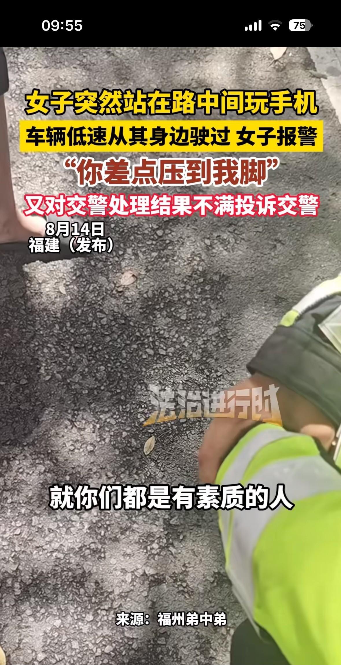 福建路边小仙女报警这个事全程看完,我觉得还是车主的错! 1、马路上有行人,你应该停车,坐等她耍完手机; 2、她一直占道不让,车主应该下车点头哈腰,敬请让道; 3、她坚决不让的话,车主可以采取抱离车道等方式,并支付相应的移位费用。(金额可协商,建议标准低于一个亿) 4、金钱如果不能打动该女子,请平复情绪耐心跟她讲解和谐社会争做文明人的道理。