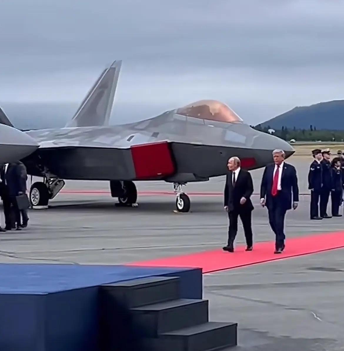 盘点这次会面,发现最经典的四个镜头: 镜头一,普京走的红毯就像走独木桥。 镜头二,背后的空军1号更显得庞大漂亮,旁边迎接人员严肃站立。 镜头3,F22战机停在旁边,普京不顾前方红毯侧身观看 镜头4,B2轰炸机编队从头顶飞过,普京不顾登台仰头观看。