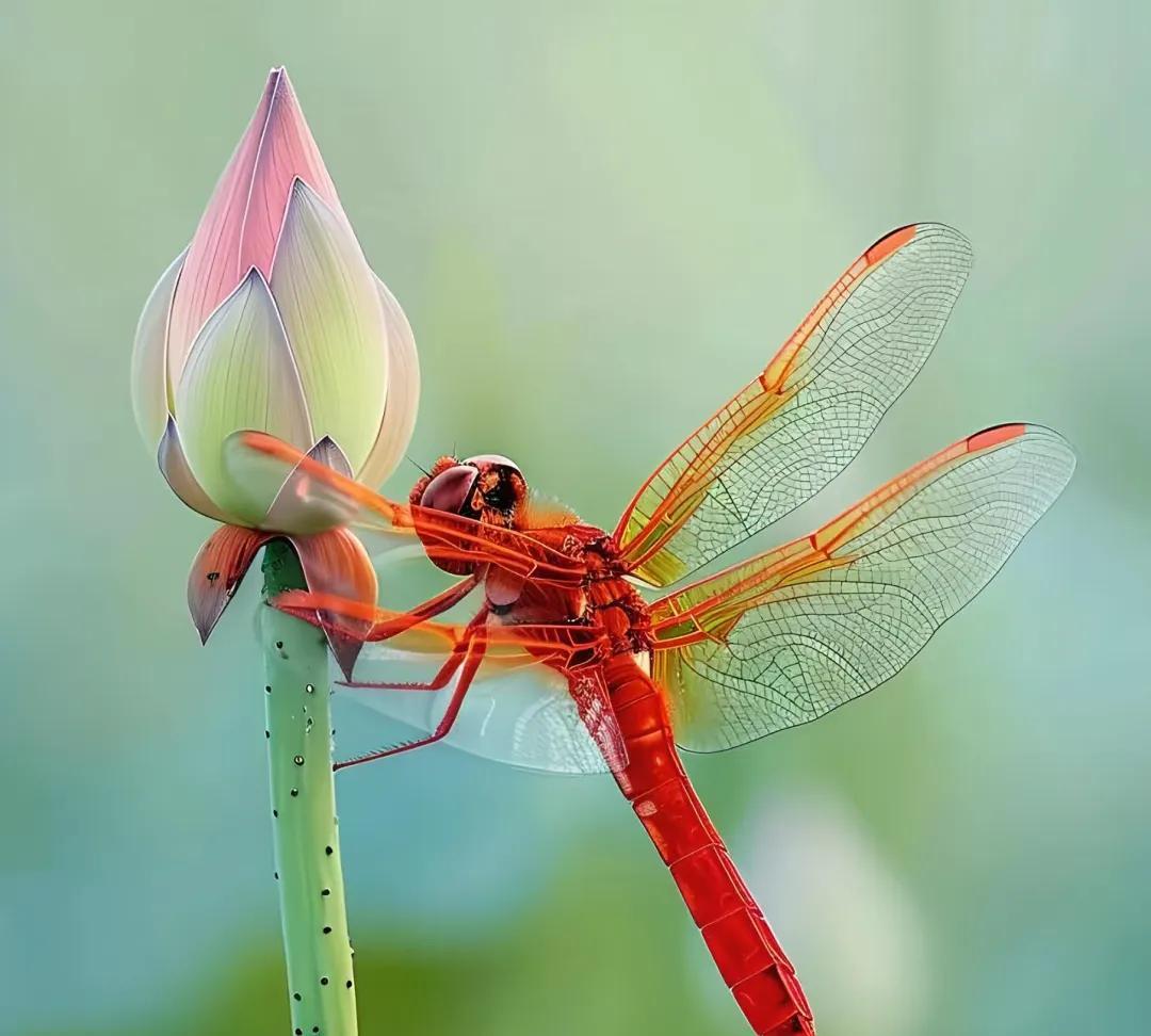 近距离欣赏蜻蜓,真的好美呀! 身披着大自然的色调,淡蓝如水,深红如火,点缀着夏日的画卷!