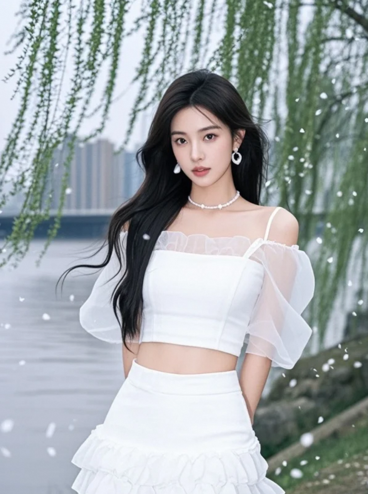 江风撩起她的裙角,柳絮轻吻她的发梢,春意正浓。