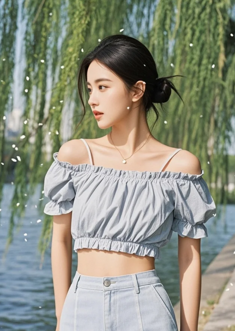 春天最动人的画面:她与柳絮共赴一场江畔之约。