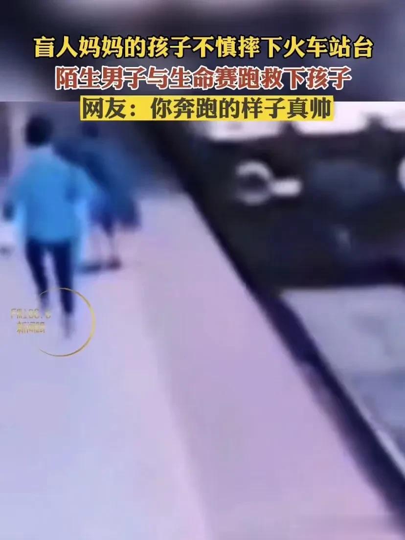 江西,有一位盲人母亲带着孩子乘坐火车。可是没想到,他们在站台等车的时候,孩子不慎摔下了火车站台,母亲无力救援,十分着急。这时,一位陌生男子跳下站台,以百米冲刺的速度跑向孩子,最终在千钧一发之际救下了孩子。