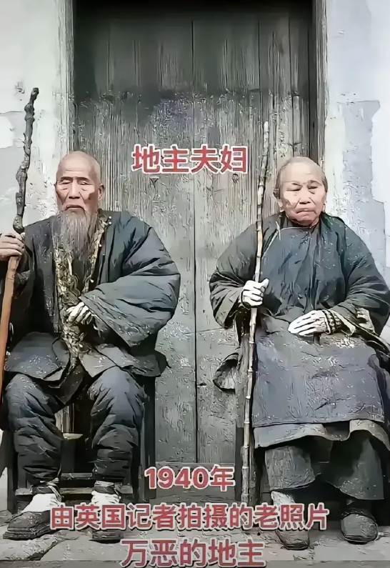 下面这张真实照片,是1940年,一个外国记者拍的一张老照片,照片里的这对老人,就是地主。