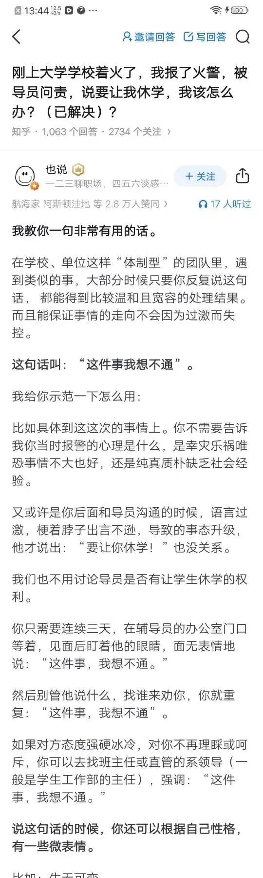 不是,着火了报火警反而让休学,这确实让人想不通啊?没犯啥错啊!