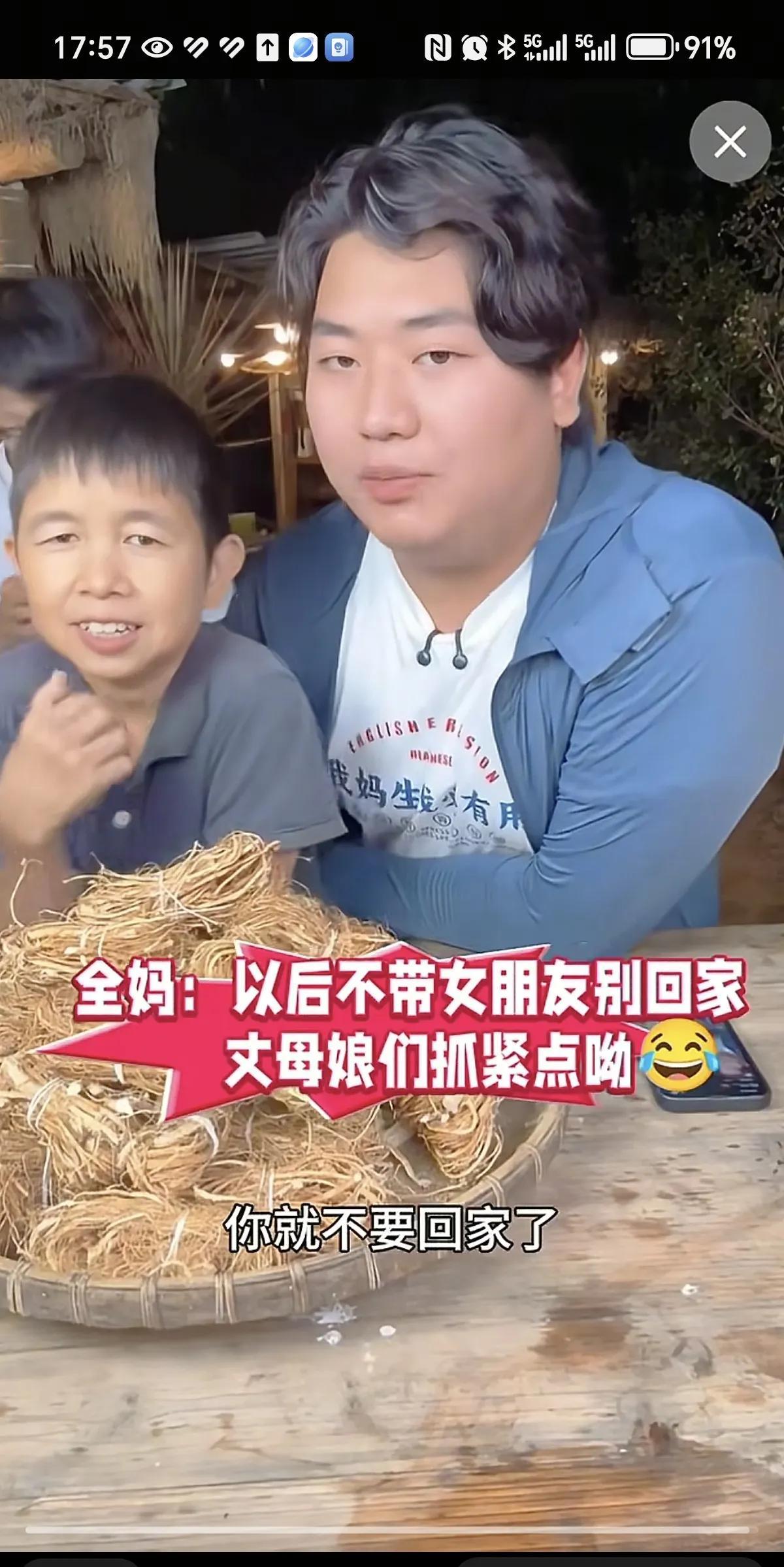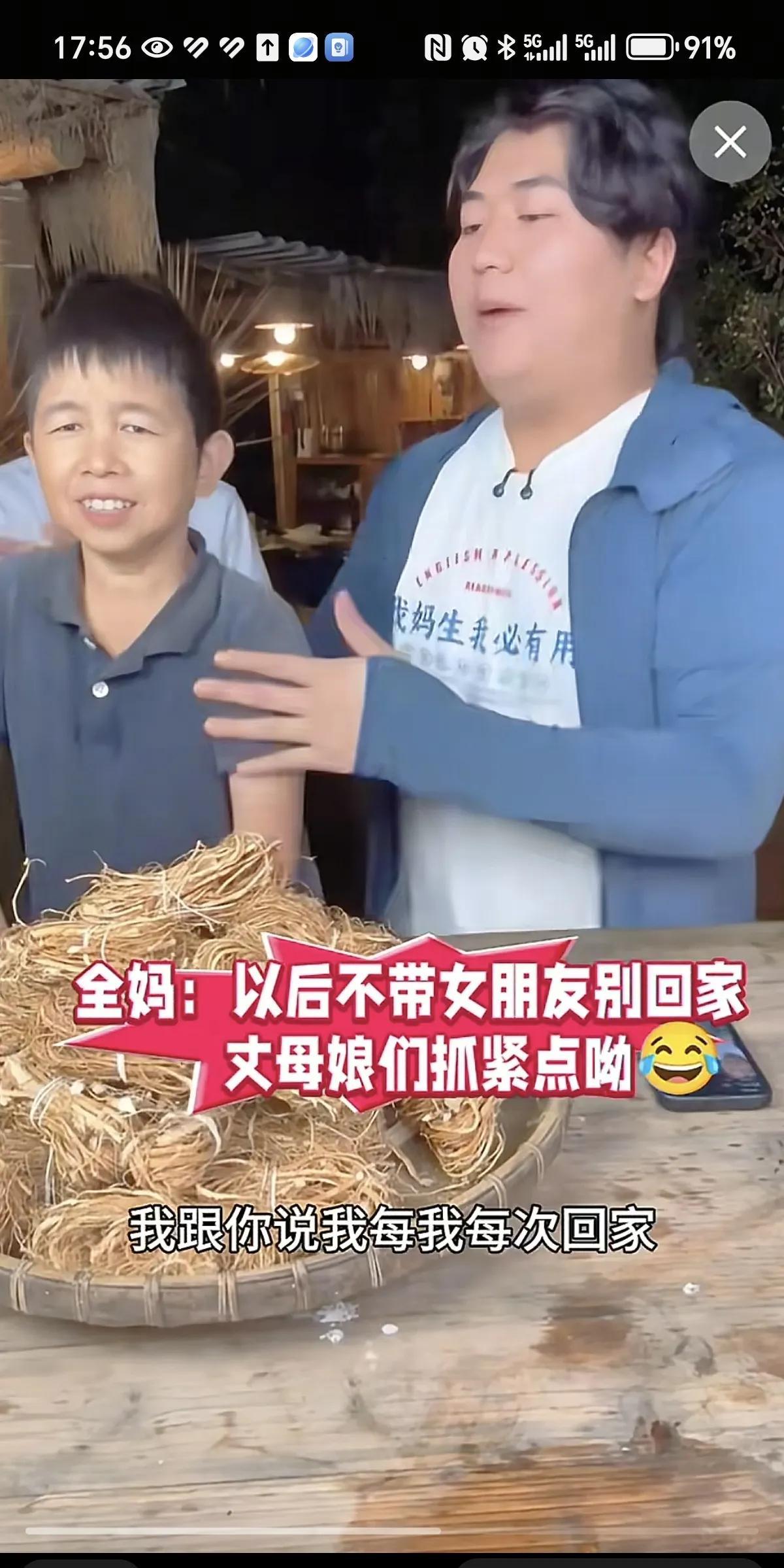 全红婵的妈妈想抱孙子了,对她的儿子全进华说:不带女朋友回家?下次一个人回来,就不要回家了,真是幽默又可爱 全红婵的哥哥全进华直播时,因为有人叫他华哥,他搞笑的说,叫哥老气,才23岁,找不到老婆找谁哭?她妈妈还催她带女朋友回家。感觉全红婵的哥哥全身都长满了幽默细胞,看他直播就像在看相声一样,感觉比央视相声还精彩 有粉丝评论留言:“华仔的女朋友以后都要排成队了”,说得也没错,毕竟全红婵的哥哥勤劳又幽默,家里还有德华帮忙带孩子,真是太优秀了